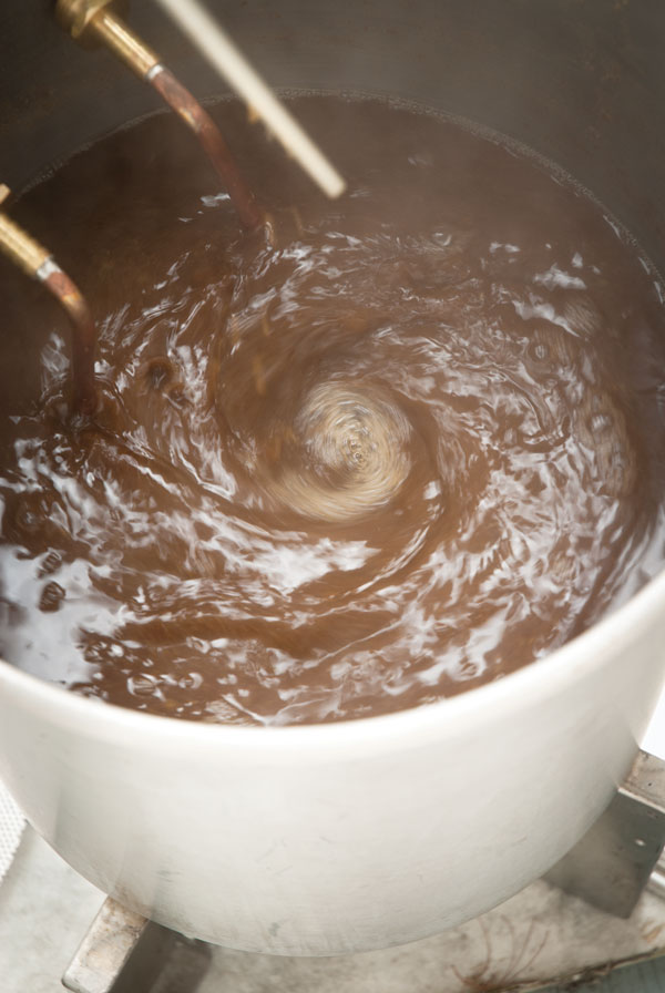 The basic setup uses your propane heater to heat a pot filled with water, the submersible pump to deliver hot water to the immersion coil (use high-temperature, braided hoses connected to the coil using hose clamps for safety), and the temperature controller to turn the pump on and off (pump must be plugged to the outlet designated for heating and the heating differential set to about 2 °F/1 °C). A good way to conserve water is to use the same water for mash heating and sparging. The water temperature is not critical if it’s about 10 °F (5 °C) hotter than your mash temperature set-point. You can either set your propane burner on the lowest fire to continuously heat the water or you can fire it on and off as needed.