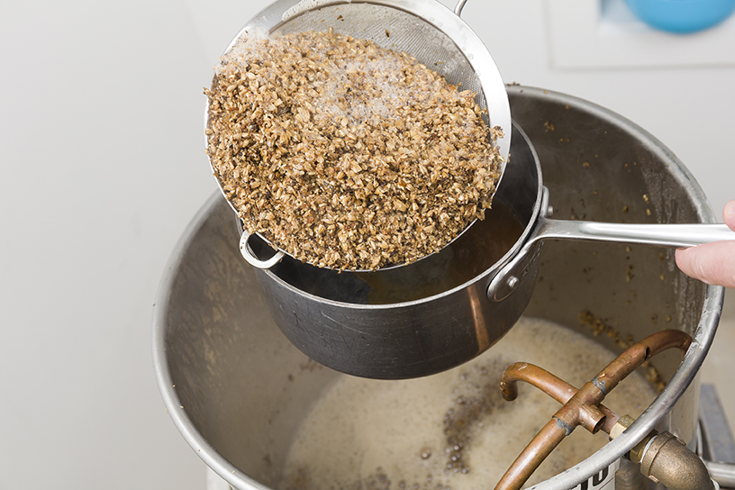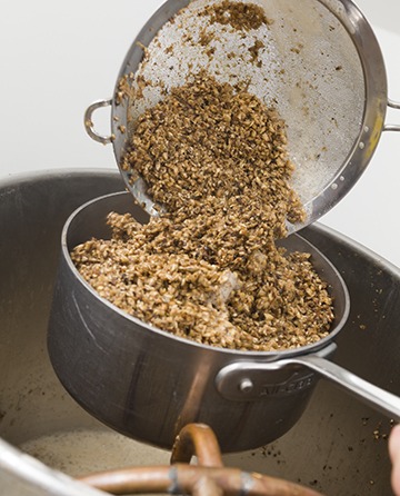 • Pull a “thick third” of the grain and liquid and bring it to a boil in a second kettle, stirring consistently for 15 minutes.