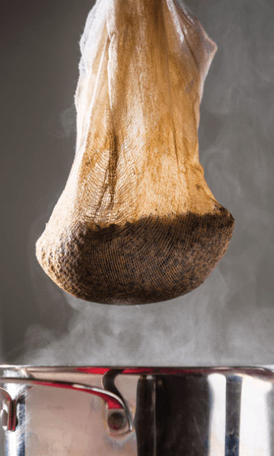 Steep the milled grain in 2 gallons (7.6 L) of water at 152 °F (67 °C) for 15 minutes. Remove the steeping bag and bring water to a boil. Remove from heat and add the malt extract. Stir until dissolved. Return to heat and bring to a boil. Total boil time is 60 minutes. Add the first hop addition at the start of the boil. Add the remaining hops and yeast nutrient per the schedule.