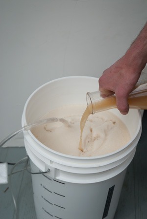 - Pour the starter culture into the cooled, aerated wort in your fermenter (step 9); the entire volume of starter may be added to the main batch, or you may prefer to decant some of the spent wort first: chill the starter during brew day to encourage cells to settle, then decant the top layer into the sink, pouring just the yeasty bottom layer into the fermenter.